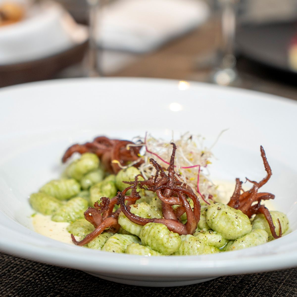 Enmarcado en una atmósfera elegante y moderna, deleita a sus clientes con una carta estacional con los productos más novedosos y frescos del mercado.