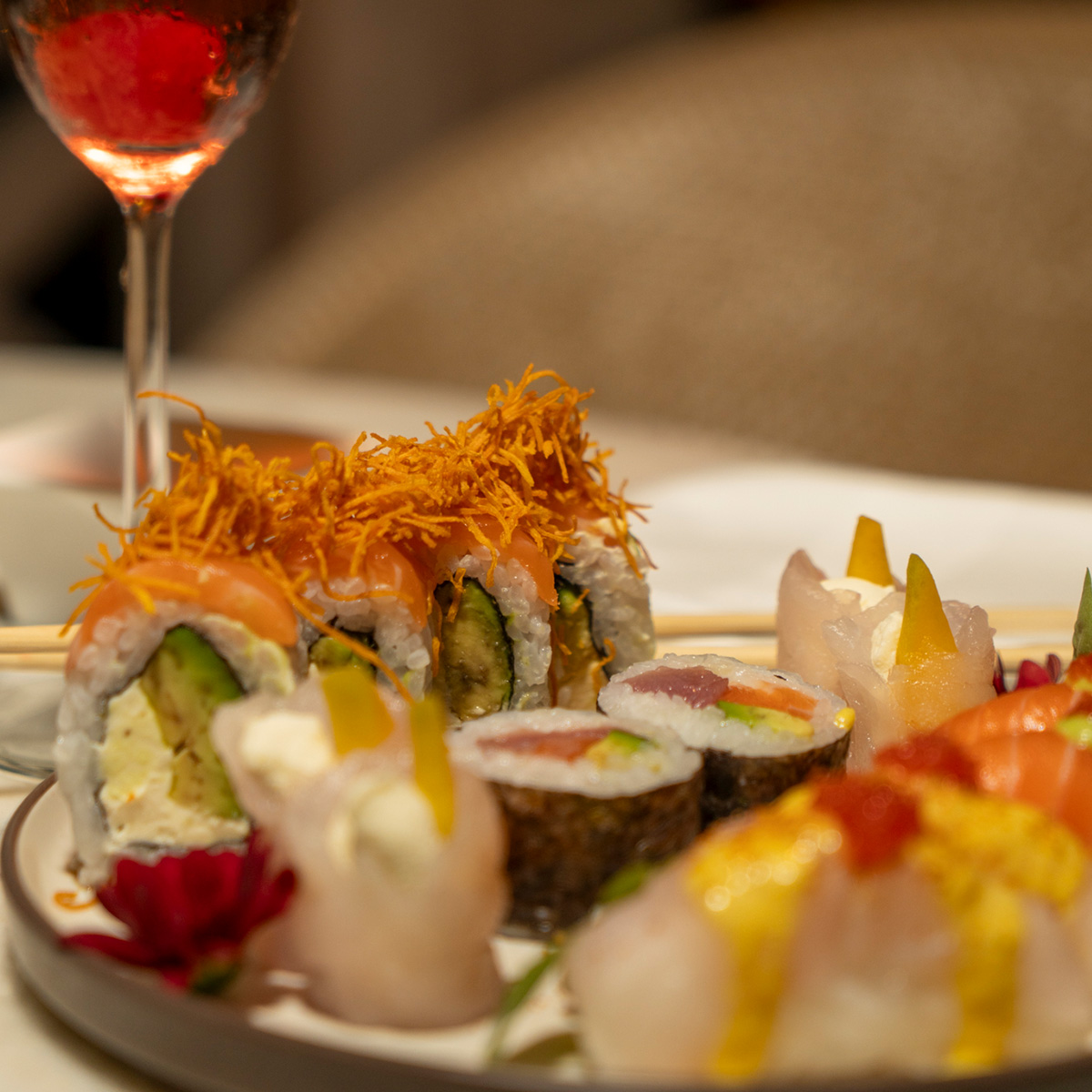 La propuesta Cocktails & sushi para dos personas incluye